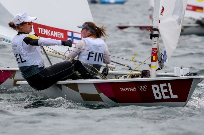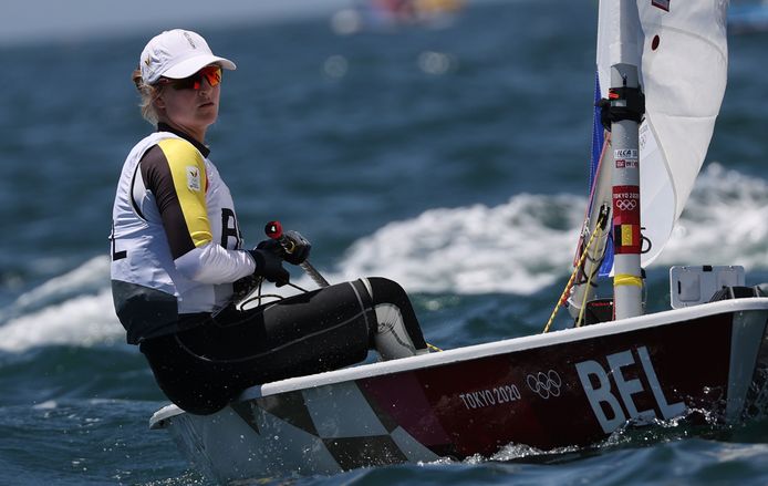 Emma plasschaert est remontée en quatrième position du général à l'issue de la septième régate dans la catégorie laser des épreuves de voile, qui se déroulent au port de plaisance d'enoshima.